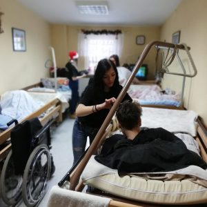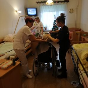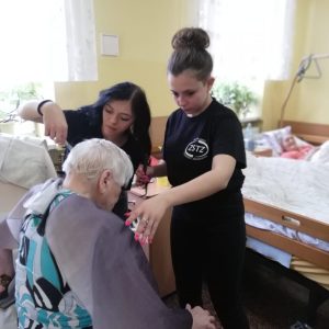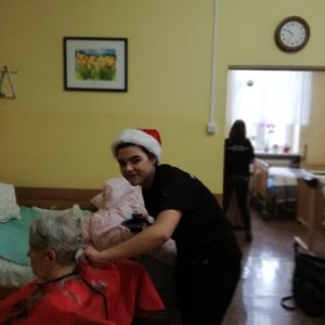 My pomyśleliśmy o pacjentach Ośrodka Opiekuńczego przy Bazylice w Piekarach Śląskich, do których wybraliśmy się 18 grudnia. Uczennice klas fryzjerskich zajęły się pielęgnacją ich włosów.