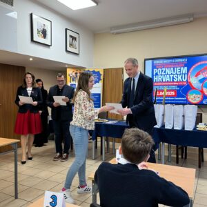 11.04.2025 w naszej szkole we współpracy z Miastem Piekary Śląskie odbył się wyjątkowy konkurs wiedzy o Chorwacji „Poznajem Hrvatsku”. Został on objęty honorowym patronatem Prezydent Piekar Śląskich – Sławy Umińskiej Kajdan. Ponad 40 młodych znawców Chorwacji z piekarskich szkół podstawowych zmierzyło się w dwóch kategoriach wiekowych (klasy 4-6 i 7-8).