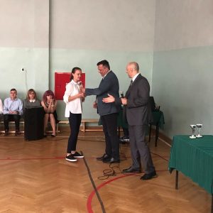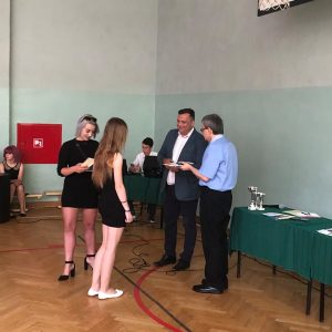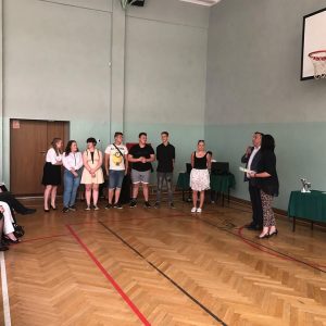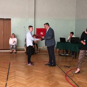 19 czerwca 2019 roku w naszej szkole odbyła się uroczystość zakończenia roku szkolnego 2018/2019. Dyrektor szkoły – Pan Adam Szczepańczyk – wręczył podczas akademii uczniom świadectwa z wyróżnieniem, dyplomy oraz nagrody za bardzo dobre wyniki w nauce, osiągnięcia w konkursach oraz za działalność w różnych sferach życia szkolnego. Natomiast Pani Katarzyna Brodowska wręczyła dyplom najzdolniejszemu uczniowi w tym roku szkolnym. Został nim nasz absolwent Mateusz Arndt. W dalszej części spotkania młodzież podziękowała nauczycielom i pracownikom administracyjnym szkoły za trud włożony w ich wychowanie. Na koniec spotkania Dyrektor szkoły życzył wszystkim obecnym udanych i bezpiecznych wakacji. Następnie uczniowie udali się na spotkania ze swoimi wychowawcami.